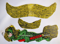 Naturally, knowing my toy collecting history, I thought he was nuts. But after some serious digging (I had no name to search for at all), I stumbled onto a pic of a toy styrofoam airplane made up of a giant nose with a massive mustache for a wing with then name "Topps Flying Thing".